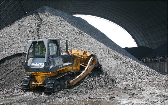 SD23C推土機作業東部城市某電廠,負責煤炭的推運、堆積工作,因作業高效穩定受到用戶喜愛。SD23C配置進口特博預濾器,選用加大水箱,標配8.3m3超大容量推煤鏟,是電廠、港口等松散物料的施工作業的首選。