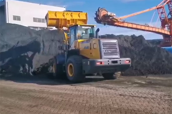 L58-C3裝載機于福建某煤場進行煤炭鏟裝和轉運作業,換擋、轉向靈活,工作效率高,掘起力和牽引力大,燃油經濟性好。