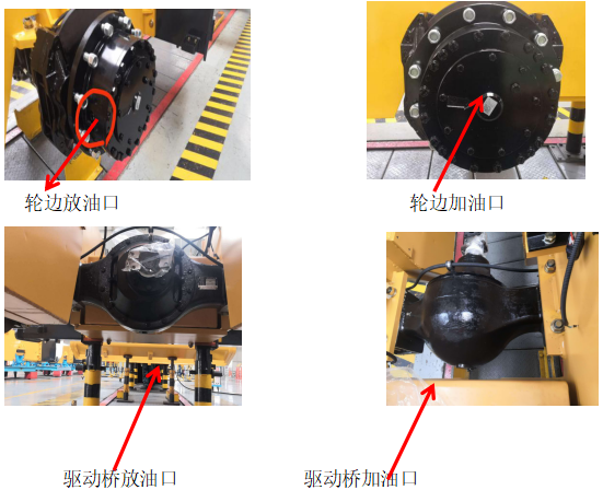 2、將壓路機停機10分鐘,冷卻齒輪油后。清理驅動橋橋包放油口與輪邊放油口上面的泥土,放出齒輪油。